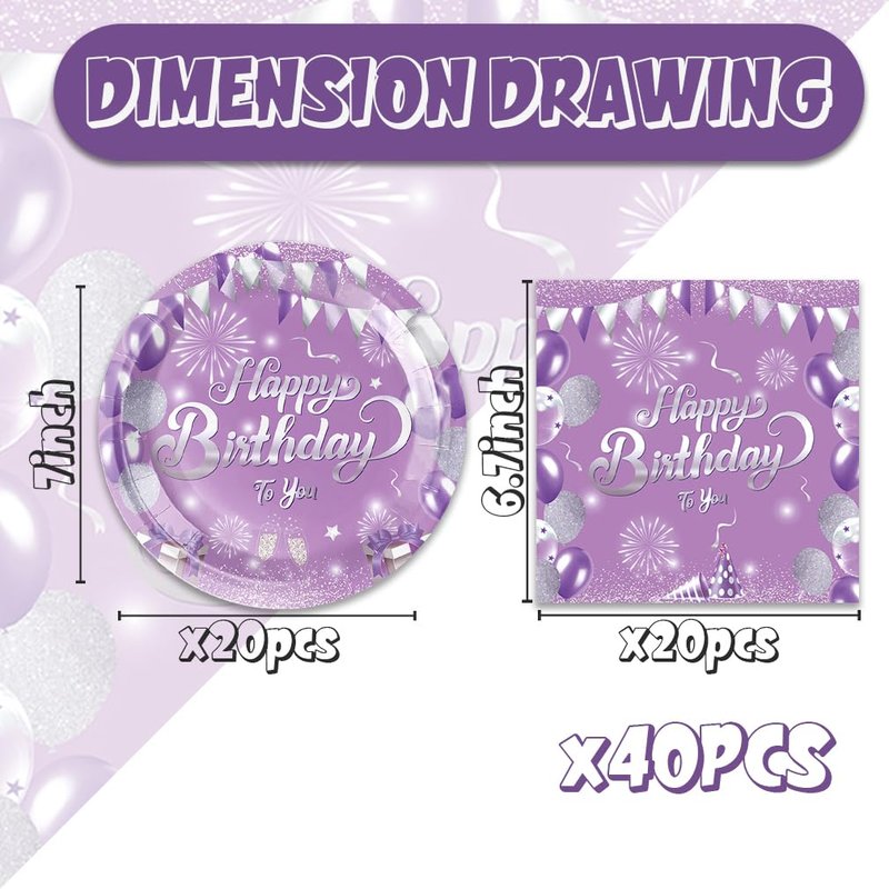 - 【Vibrant Design】:Get the party started with our elegant purple silver style design! purple birthday plates and napkins features a stylish purple silver color and cheerful "Happy Birthday" wishes. Suitable for both women girls, these purple silver birthday party plates make fantastic decorations for your unforgettable glitter party.