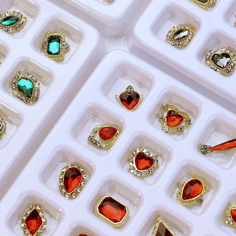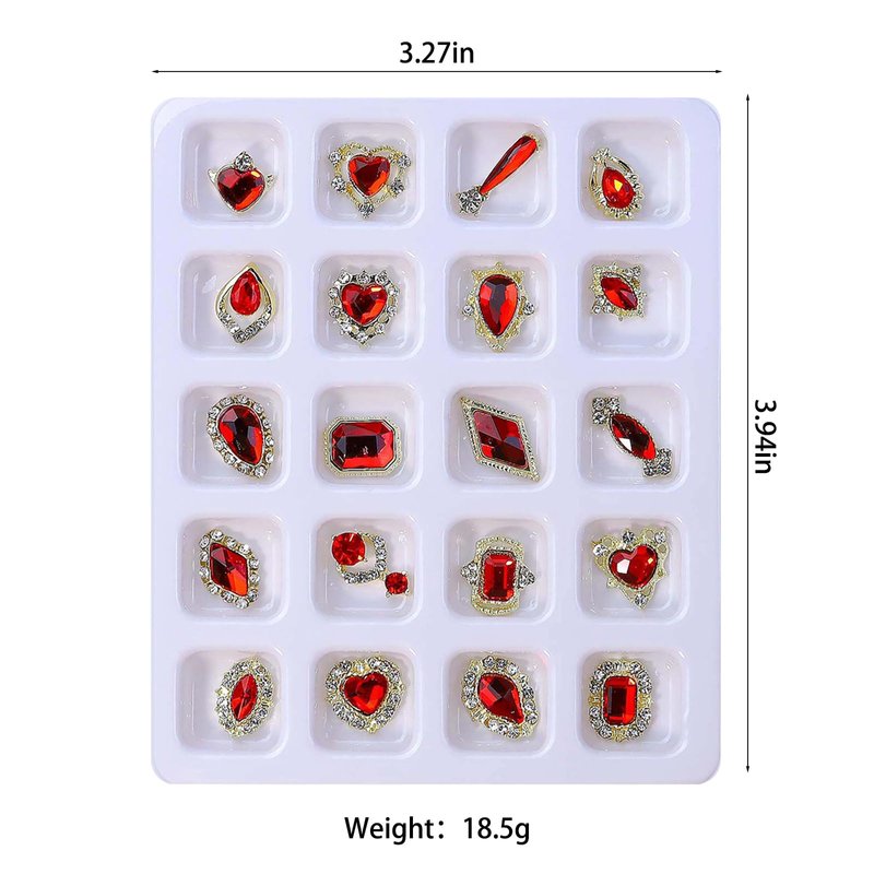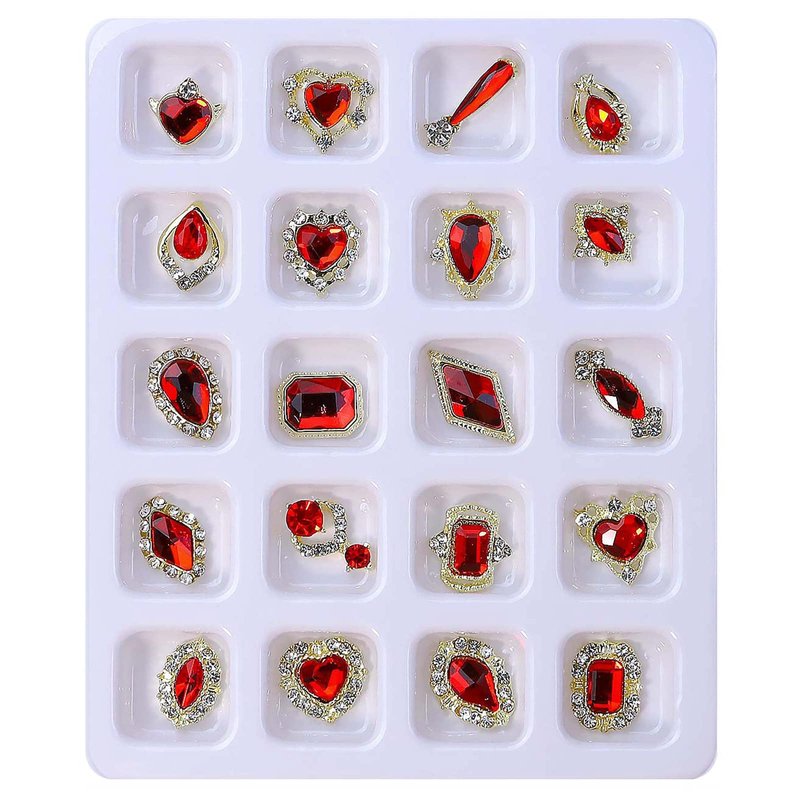 - ✔【2 BOXS LUXURY ALLOY NAIL RHINESTONES】This 3D Red nail art diamonds nail charms kit are available in 20 different hot selling style, which add sparkle and glamour to your nail art, make your nails more dazzling and charming. The paired sets give your nails a symmetrical aesthetic