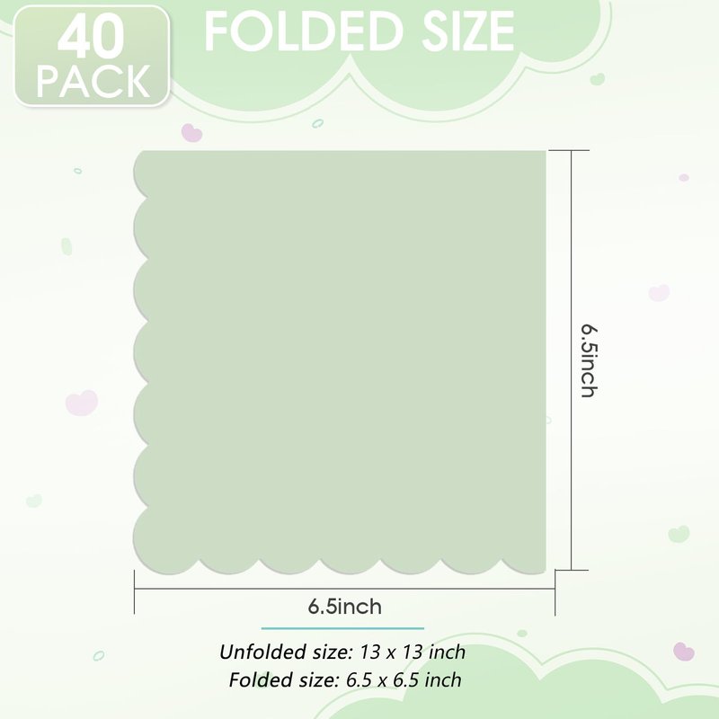 40PCS Sage Green Napkins 2 Ply Sage Green Cocktail Napkins Disposable 6.5 x 6.5 Inch Green Beverage Dessert Napkins Scalloped Napkins for Dinner Wedding Bridal Anniversary Birthday Party Supplies