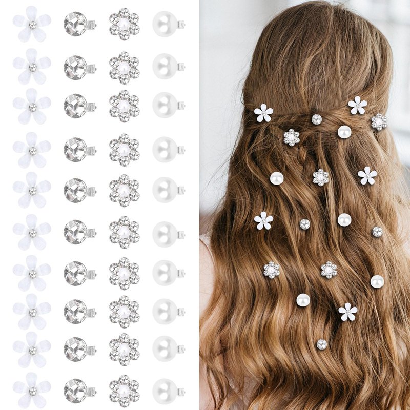 40Pcs Small Flower Hair Clips for Women, Mini Rhinestone Pearl Hair Clips White Hair Clips Wedding Hair Accessories for Women Girls