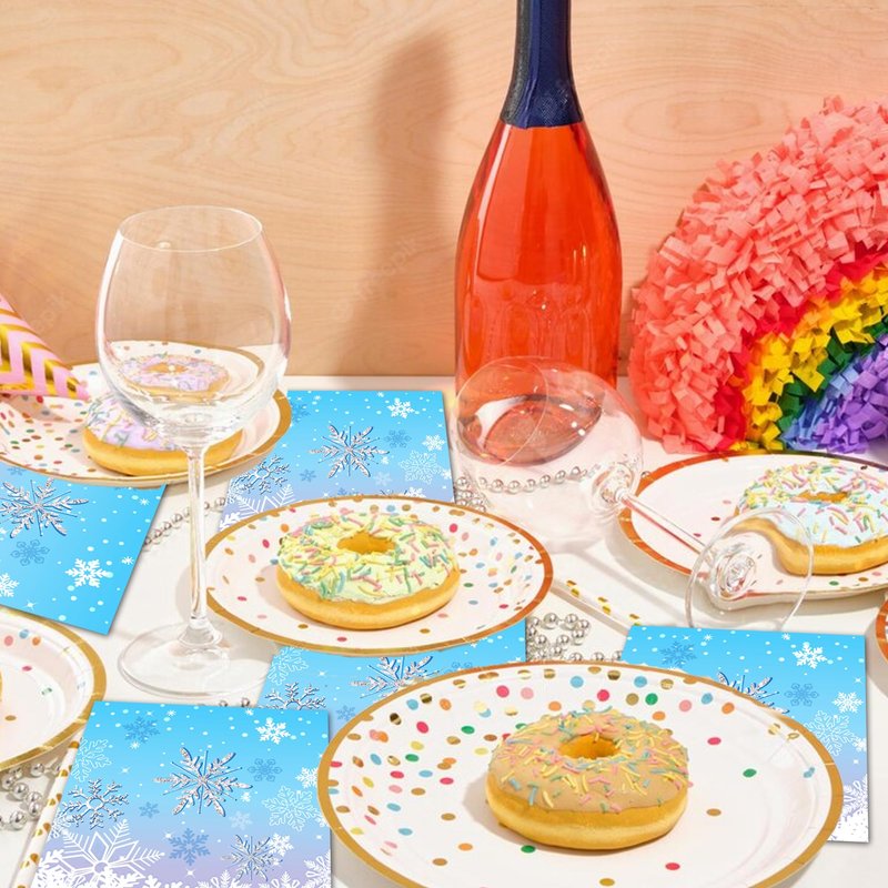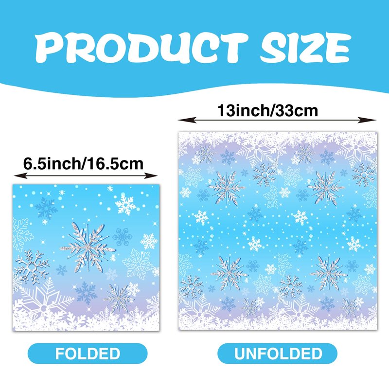 - 【Proper Size】:This Snowflake Winter Wonderland decorations paper napkins set includes 6.5 inches long by 6.5 inches wide folded, and 13 inches long by 13 inches wide when unfolded, this size makes for a nice experience, easy to carry and wipe, adding excitement to an unforgettable dining experience for you and your guests.