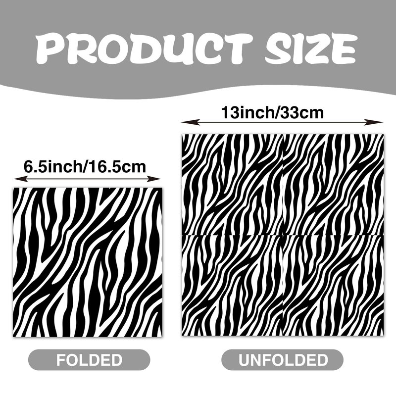 - 【Wide Application】: These disposable napkins are suitable for use in living room, dining table, bathroom, dining room, kitchen, restaurant and more, also can be applied to Zebra Print themed party, wedding anniversary, birthday party, tea party, baby shower, picnic, camping and so on.