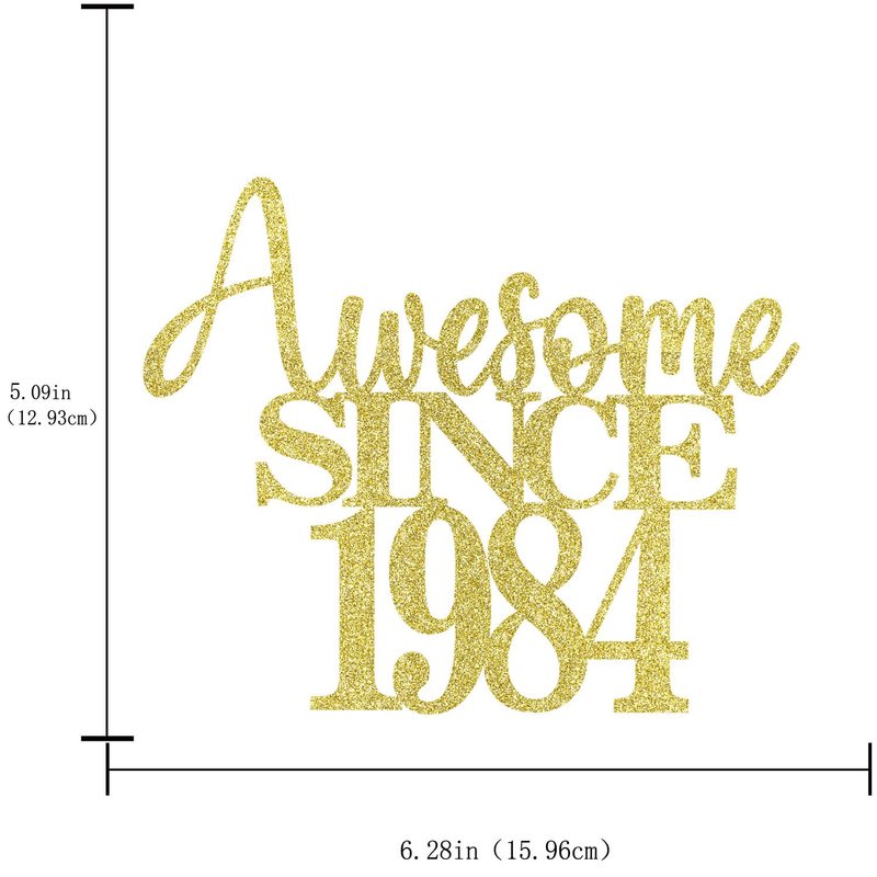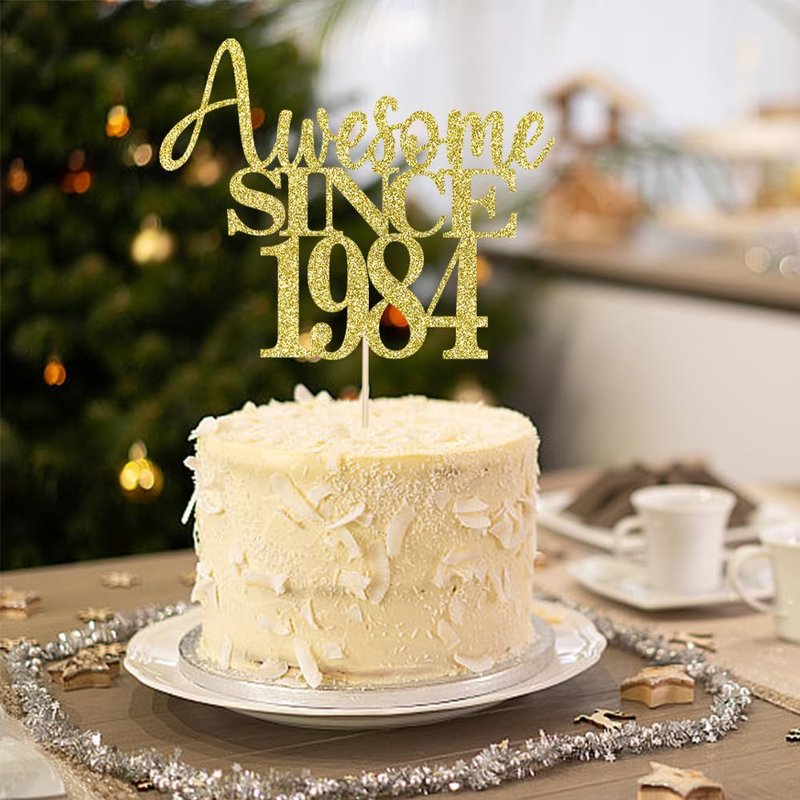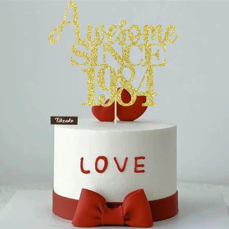 40th Awesome since1984 Cake Topper Cheers to 40 Years Birthday Cake Pick 40 Fabulous Cake Decoration for Happy 40th Birthday Anniversary Party Cake Decorations Supplies (1984, golden)