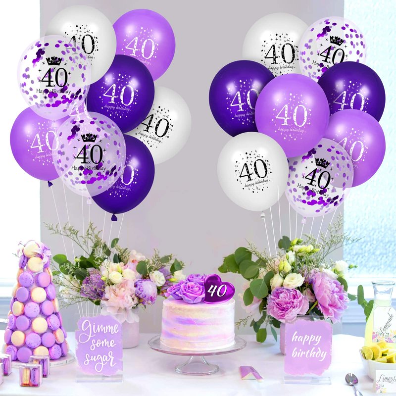 - 💜【EASY TO USE】: These happy 40th birthday latex balloons support air or helium. Do not inflate the balloons too full to avoid the balloons burst. You can tie these balloons to tables and chairs, hang them on ceilings, walls, gardens, tables, branches, or use them to decorate party cake tables and fireplaces.