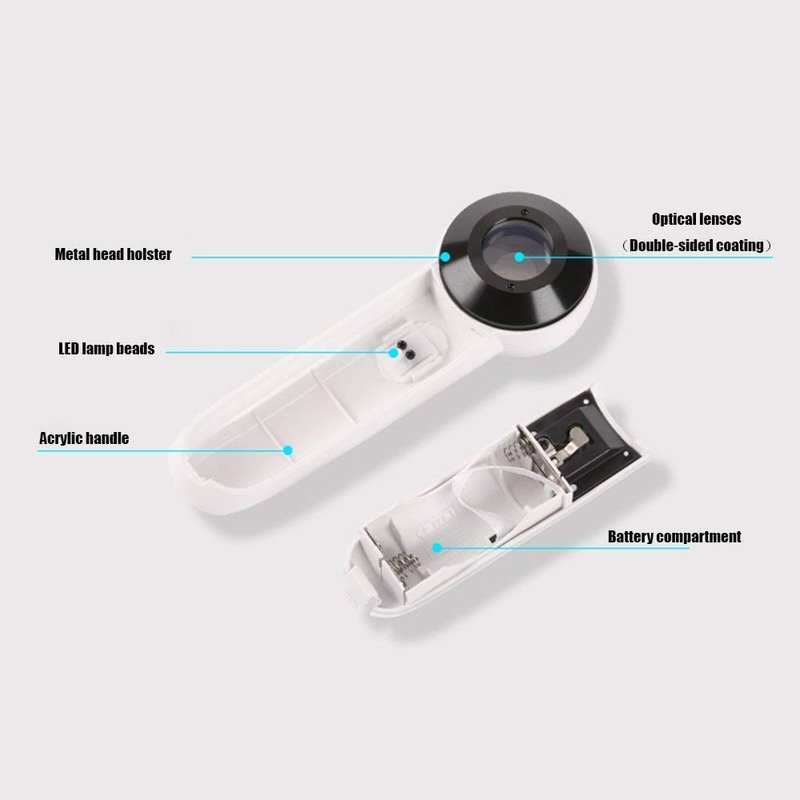 40X Handheld High Power Magnifier Magnifying Glass Jeweler Eye Jewelry Loupe with 2-LED Light Leather Case (White with Black)