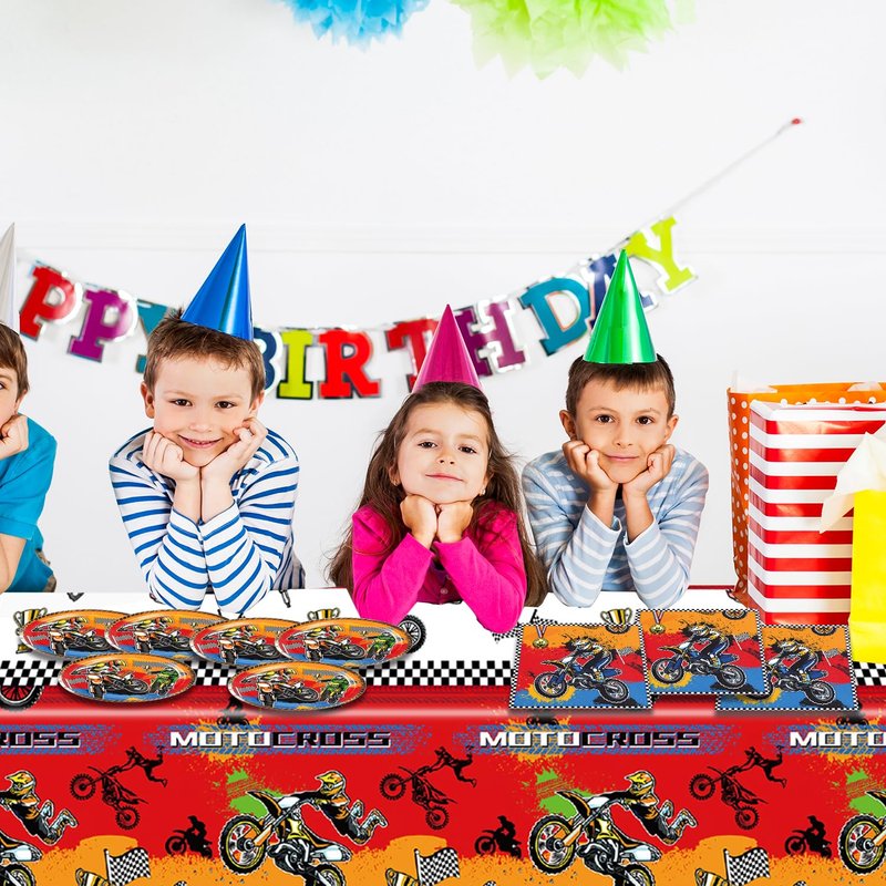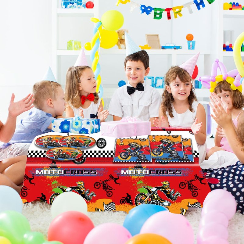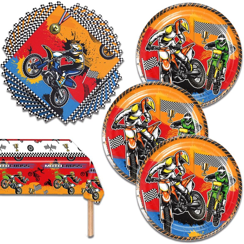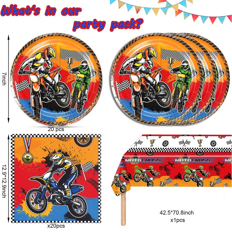 - 【Package Includes】: This dirt bike tableware set features cool motocross dirt bike designs on 7-inch plates, napkins, and a tablecloth, perfect for accommodating up to 20 guests. It's a great option for anyone who wants to throw an awesome motorcycle bash.