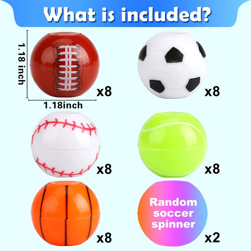 - Sports Party Favor: You will receive eight basketball spinners, eight baseball spinner fidget, eight tennis sensory toys, eight football toy, ten soccer fidget spinners, a total of forty-two different spinners, a variety of fidget toy for you to choose