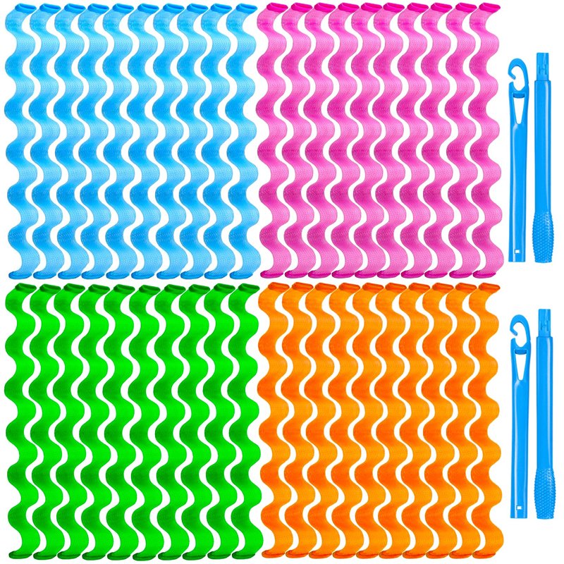 Curl former set is made of soft material, soft and reusable. hook curlers with hook 2 pieces,40 pieces of magic curlers, Sufficient Quantity to culer you corkscrew spirals hair roller curlers rollers