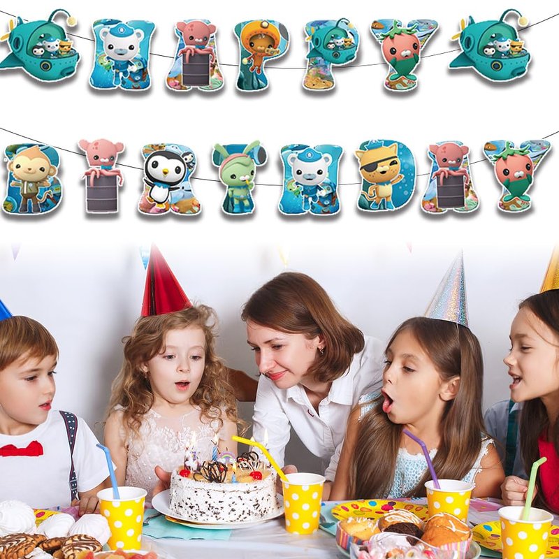 - About the Octo Banner: Includes 13 happy birthday letters. The birthday banner is made of high quality paper, non-toxic and tasteless, environmentally friendly, lightweight and reusable.7 multi color different type each 2pcs.total 12 pcs