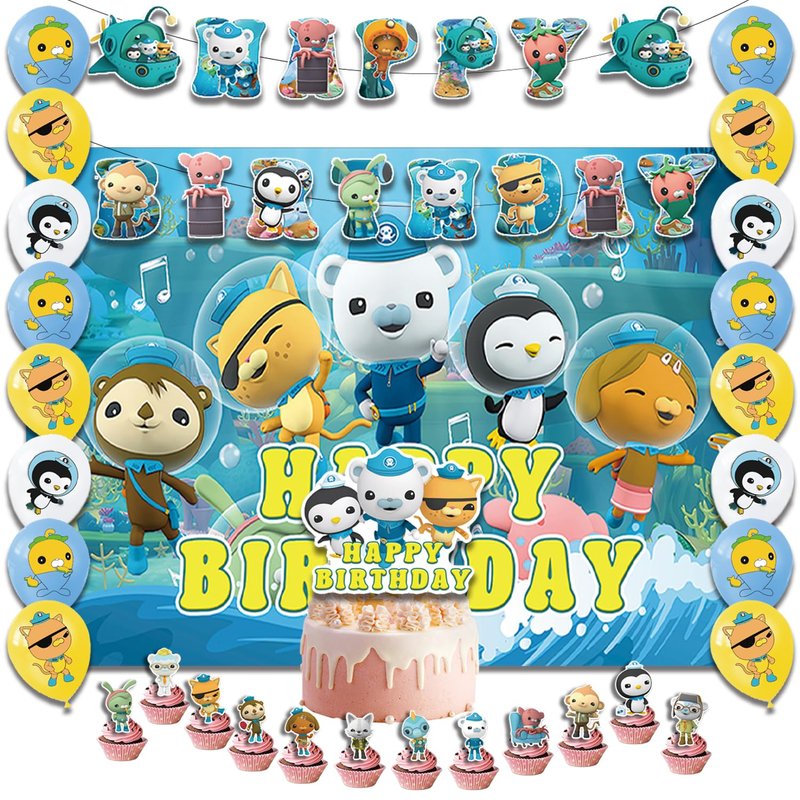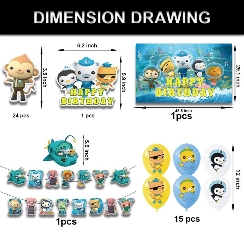 The Octon Birthday Party Supplies pack set coming include cute banner 1pcs,high quality 24pcs cupcake stick,,1 cake topper,1 Blackdrop,15 Balloons