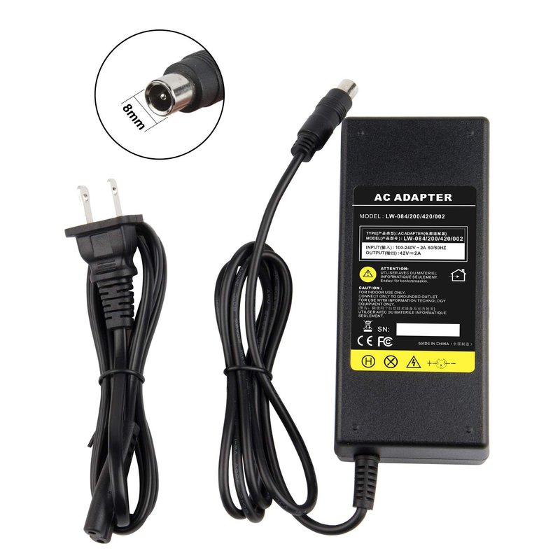 - 【POWER SPECS】Input : 100-240V. Output: DC 42V 2A. 1-Prong RCA Connector(0.31inch). Suitable fast-charge power adapter for lithium-ion electric scooter batteries.