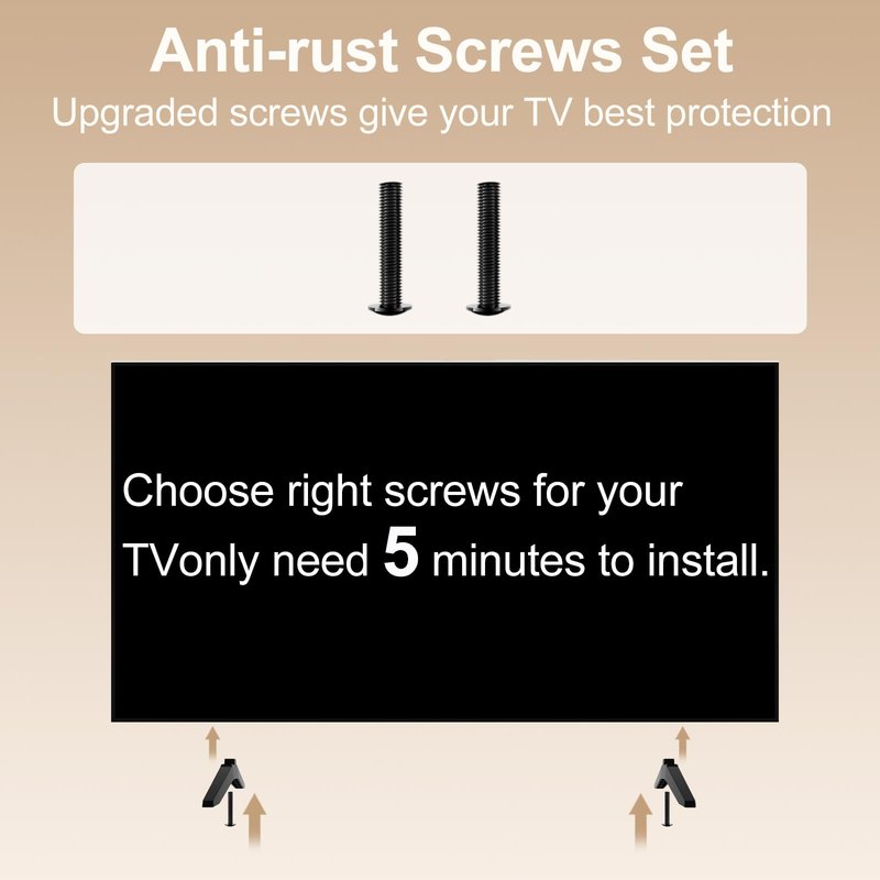- With Anti-Rust Screws: Upgraded anti-rust screw kit, offers superior protection for the bottom of your TV, ensuring its longevity and stability.
