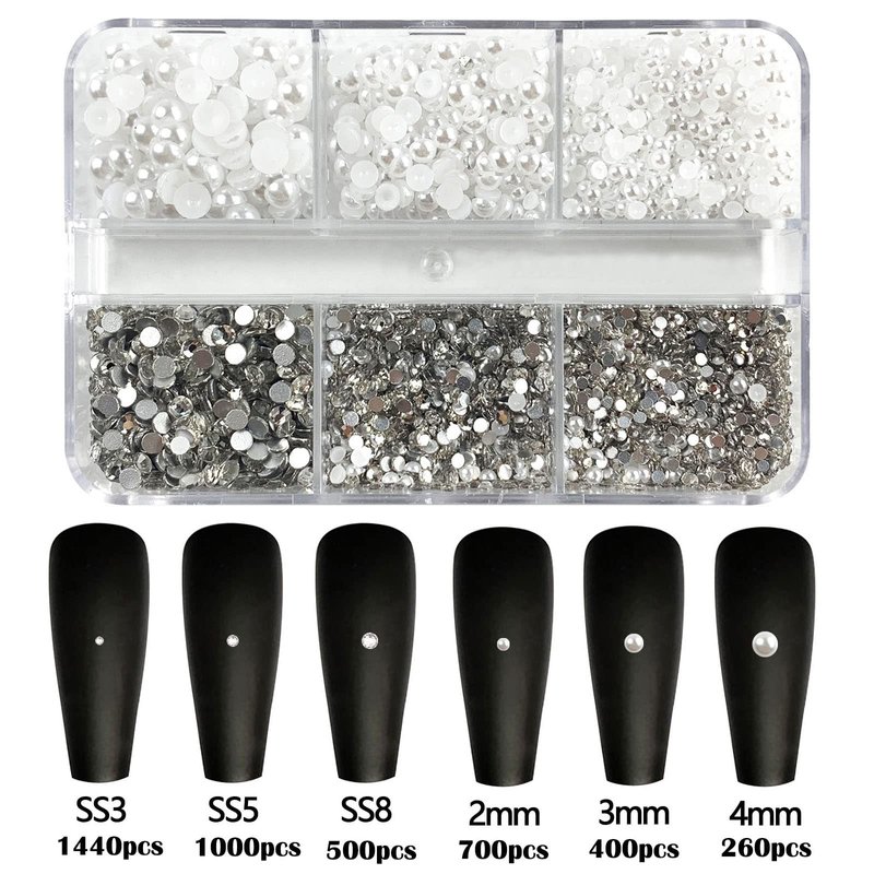 - 【Size included】: Rhinestone sizes are: ss3, ss5, ss8, pearl sizes are: 2mm, 3mm, 4mm, different sizes bring different amazing effects to your nail art design.