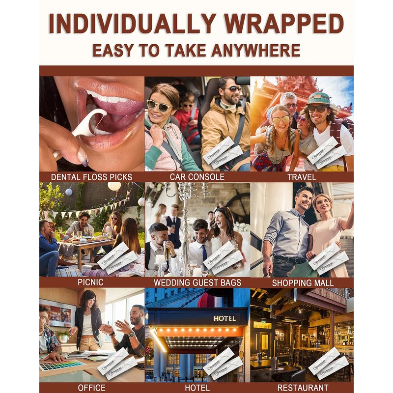 - đăApplicationăIndividually wrapped flossers perfect for purses, pockets, car, desk, briefcase, restaurant, lunch boxes, camping, travelling, wedding bathroom guest baskets. Great to have on the go to get rid of unwanted food particles between your teeth.