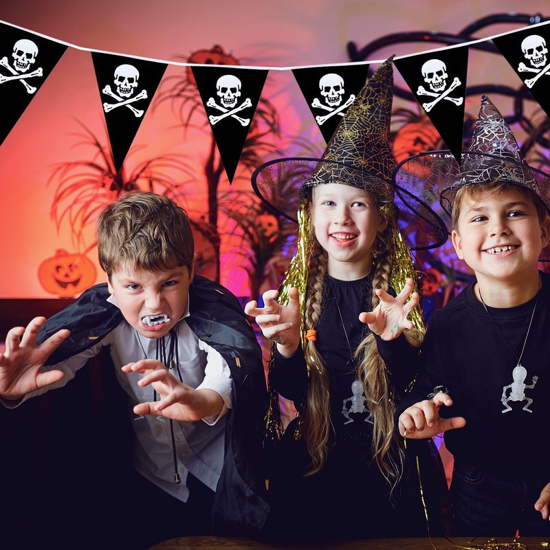 Pirate Banner, Pirate Theme Party Decorations Supplies, Skull Pirate Flag Triangle Flag for Pirate Party Birthday Party and halloween Decoration