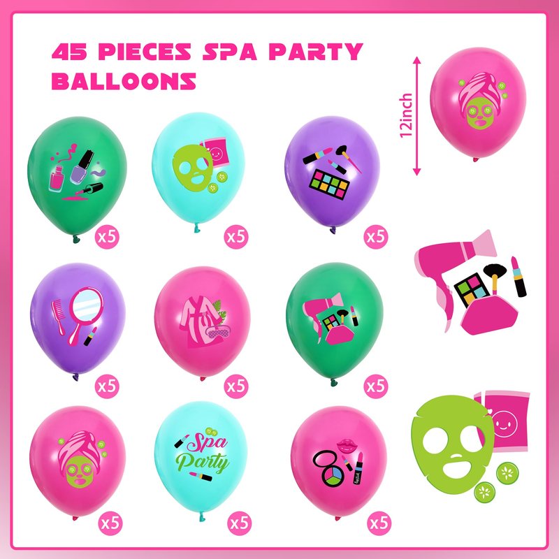 - Packing Include: The package includes 45 pieces of spa-themed latex balloons featuring delicate prints in colorful and beautiful designs. This ample quantity and variety of styles are perfect for your daily use or to have as replacements. The novel and cute combination sets provide ample decoration for your party, adding extra fun to your Spa Day