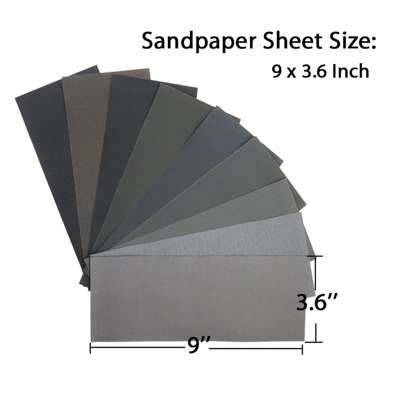 - Wide Variety of Grit - Perfect selection of different grits, Including 5 sheets of each grit: 400/ 600/ 800/ 1000/ 1200/ 1500/ 2000/ 2500/ 3000, total 45 sheets.