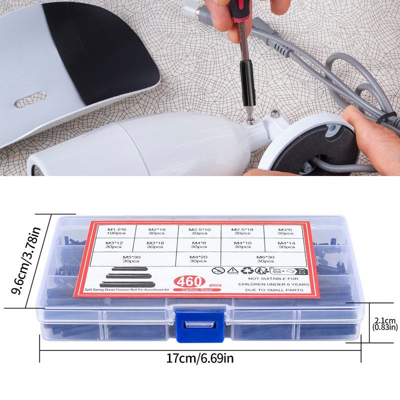 - Wide Applications: Slotted spring pin kits are suitable for commercial use, industrial production, home improvement such as fixing mechanical installations, building and maintaining fixtures and appliances, repairing appliances, cars, trucks, boats, etc.