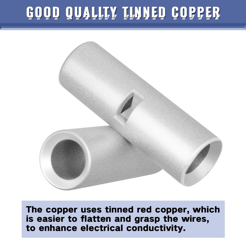- ♥ EXCELLENT CONDUCTIVITY: Pure copper ensures the highest conductivity. A thin layer of tin will protect your butt splices from corrosion.