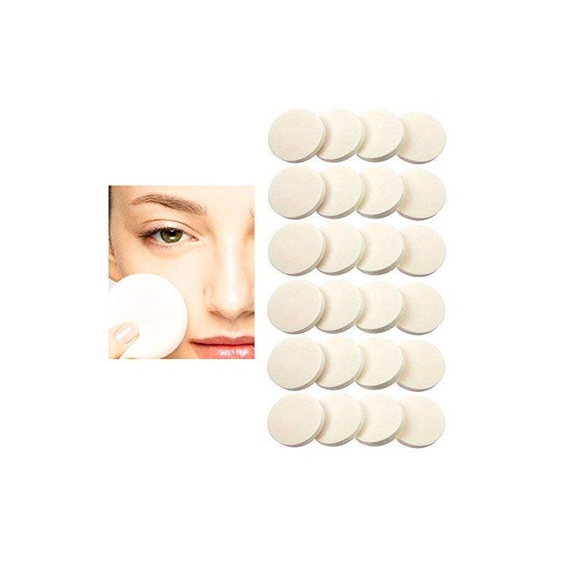 These round cosmetic sponges are essential for applying and blending liquid or cream foundation.