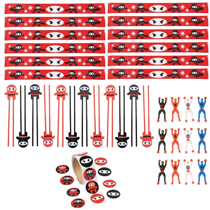 48 PC Ninja Party Pack Ninja Party Favors - Chop Sticks, Slap Bracelets, Stickers, Wall Climbers