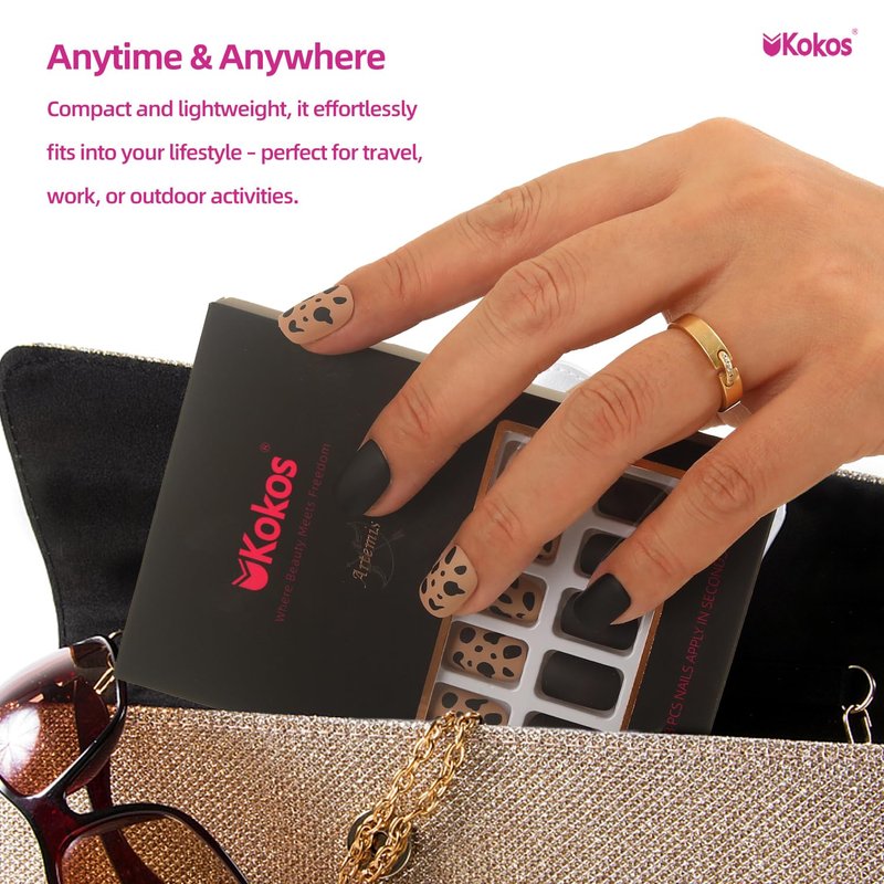 UKOKOS Press On False Nails offer a convenient and stylish solution for achieving salon-quality nails at home. These artificial nails come in a variety of sizes, shapes, and designs to suit different preferences. The application is simple—just clean and prep your natural nails, select the appropriate false nail sizes, apply the provided adhesive, and press the nails onto your own for a secure and seamless fit. Enjoy the flexibility of changing your nail look without the commitment of traditional gels. With UKOKOS Press On False Nails, you can effortlessly achieve a professional and eye-catching manicure in minutes. Elevate your style and showcase your creativity with this hassle-free and on-trend nail accessory.