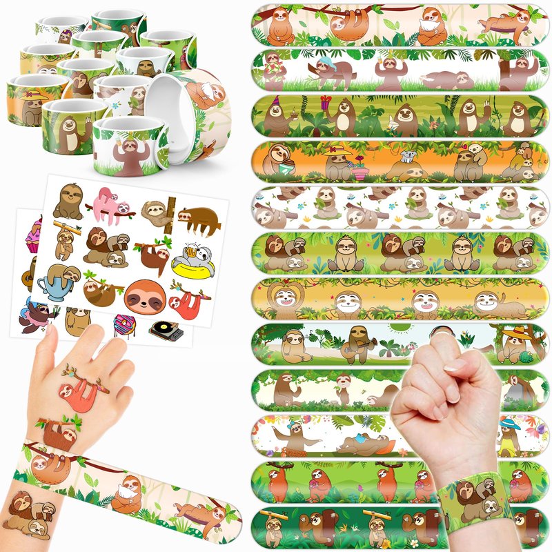 - š¦„ćPERFECT GIFT FOR SLOTH ENTHUSIASTSć: Our SLOTH Temporary Tattoos and Slap Bracelets are the perfect gift for people of all ages, from kids to adults. Suitable for any occasion, they offer an affordable and delightful option. Whether for school events, birthdays, or stocking stuffers, this SLOTH themed collection adds a fashionable and nostalgic element to anyone's accessory collection, invoking happiness and cherished memories.