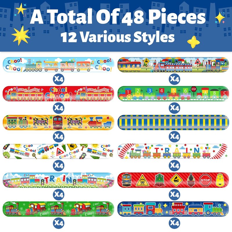 48Pcs Slap Bracelets for Train Party Favors for Kids (12 Styles)