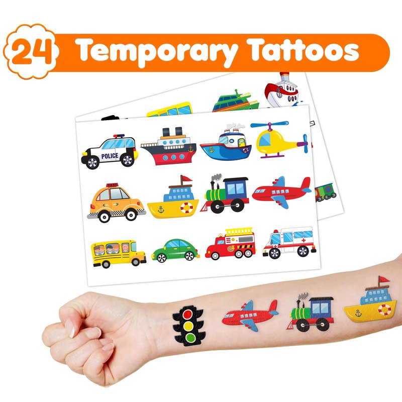 - Style: Transportation Temporary Tattoos; Birthday Party Supplies; Birthday Decorations; Party Favors; Vehicles