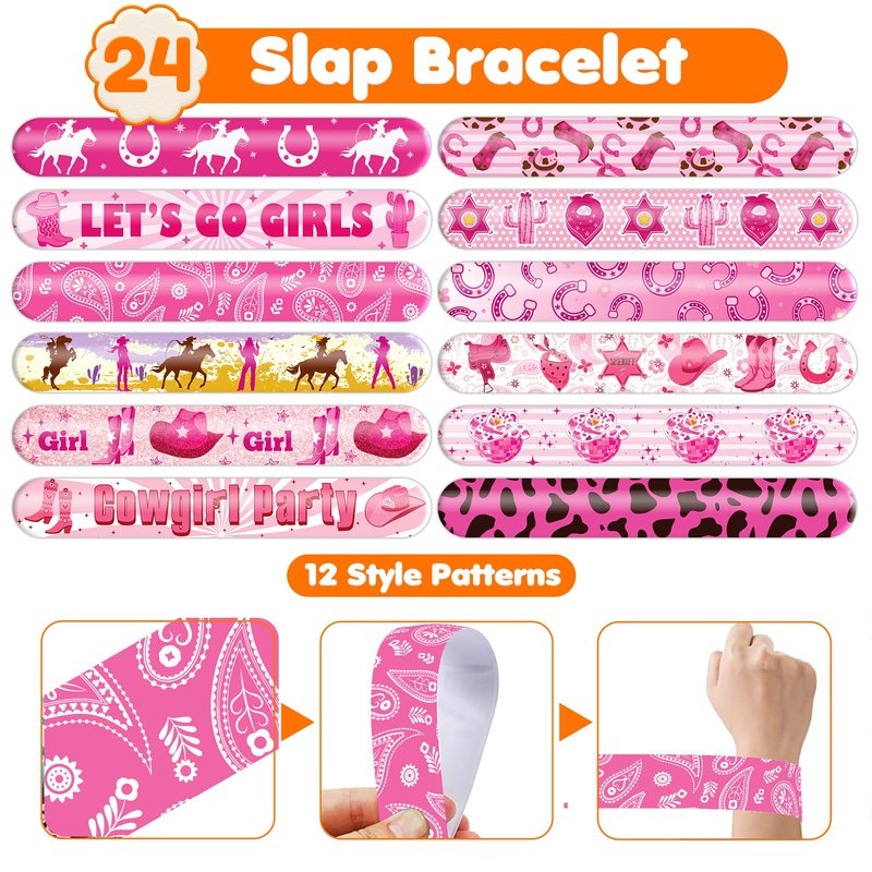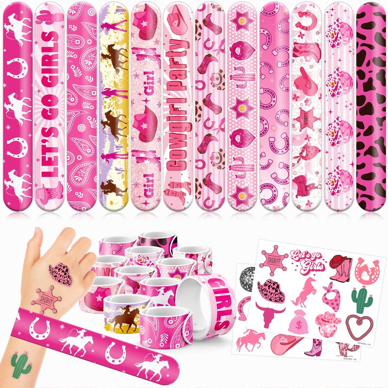 48 PCS Western Cowgirl Party Favors 24PCS Tattoos Stickers 24PCS Slap Bracelets Wristbands Perfect for Themed Birthday Baby Showers or Classroom Rewards Ideal Decor and Gifts for Girls and Boys