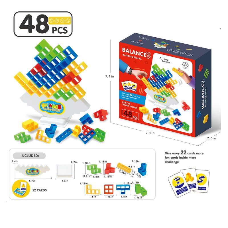 48-Piece Tetra Tower Balance Stacking Blocks Game - Perfect for Family Bonding, Parties, Travel, Team Building,Stack Attack Game, let The Imagination soar!