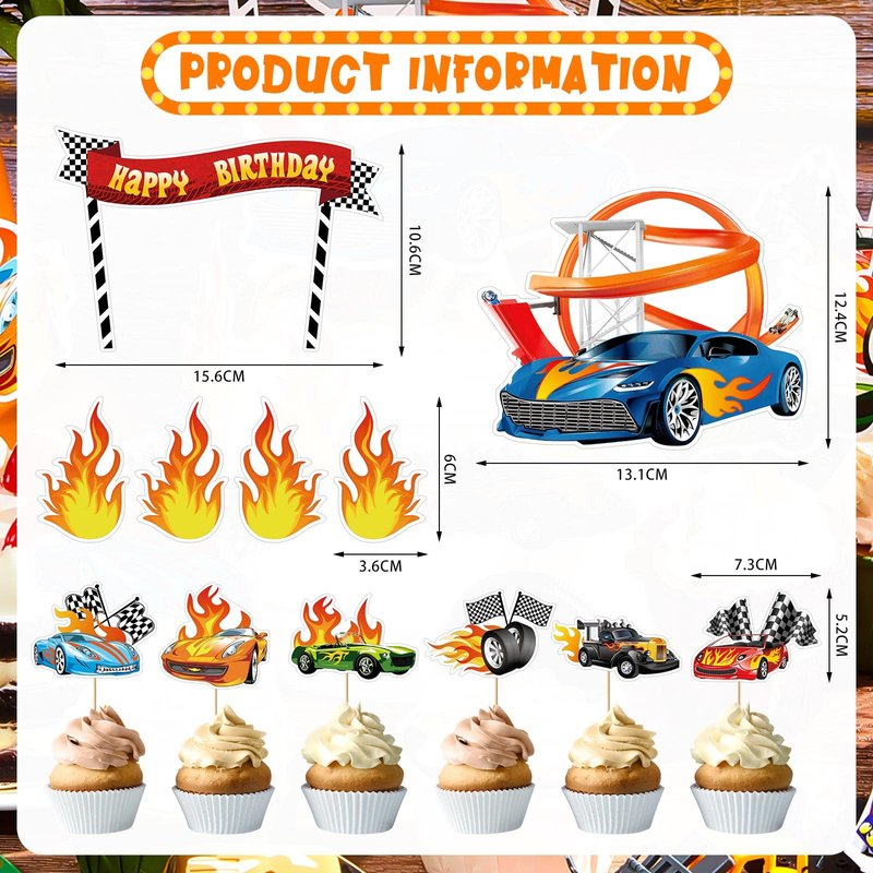 - Items sent to you: there are a total of 48 pieces of race car cake party decorations in the package for you, including 6 pieces of cake decorations, 42 pieces of cupcake decorations, available in assorted styles and multiple shapes, sufficient to meet your hot car birthday party decoration needs