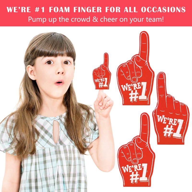- Finger Design: the words [We're #1] are printed on the sports foam finger, which is fun and warm, showing team spirit, a fun accessory for your sports theme party or game, you can use it to cheer for your favorite sports team, cheer up the crowd with these mini foam fingers and add a fun photo prop to your sporting event party