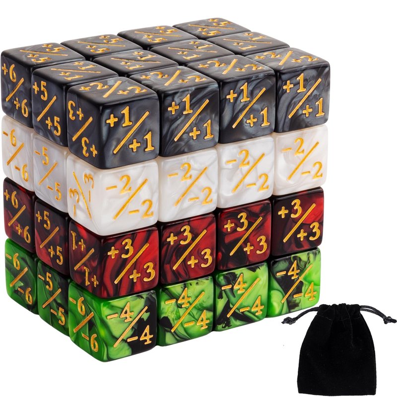 - Sufficient Quantity: You will receive 48 pieces of dice counters and velvet bags, including 12 pcs pearl red positive dice, 12 pcs pearl green negative dice, 12 pcs classic black positive dice and 12 pcs classic white negative dice , enough quantity for your gaming or replacing.