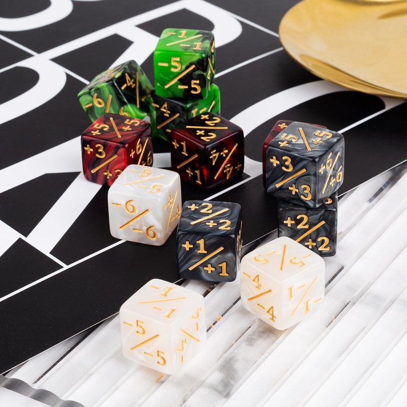 48 Pieces MTG Counter Dice Set +1/+1 Counters Tokens Marble Life Plus One Dice for Magic The Gathering, MTG, Table Top Game Accessories, 4 Styles