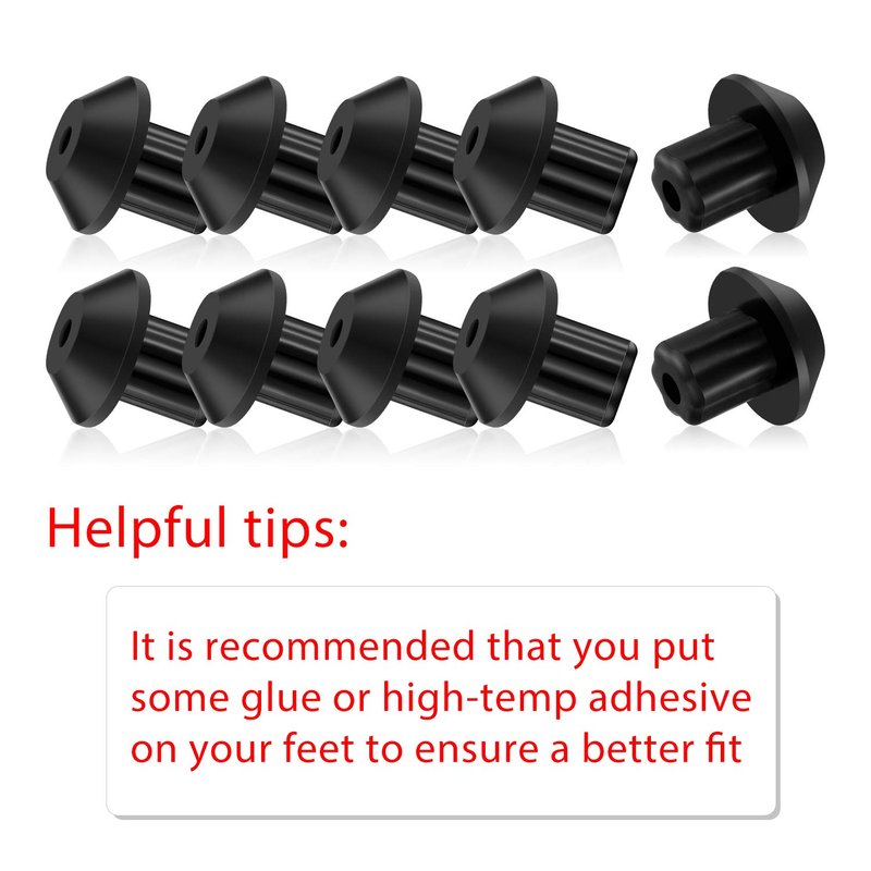 - Nice performance: our foot replacements are made of sturdy rubber material, wear resistant and heat resistant, fits in a 3/16 inch hole, the depth is 0.255 inch (a little bigger than 1/4 inch) and the post (or part that inserts into your grate) measures approx. 0.178 to 0.180 inch (about 3/16 inch) in diameter
