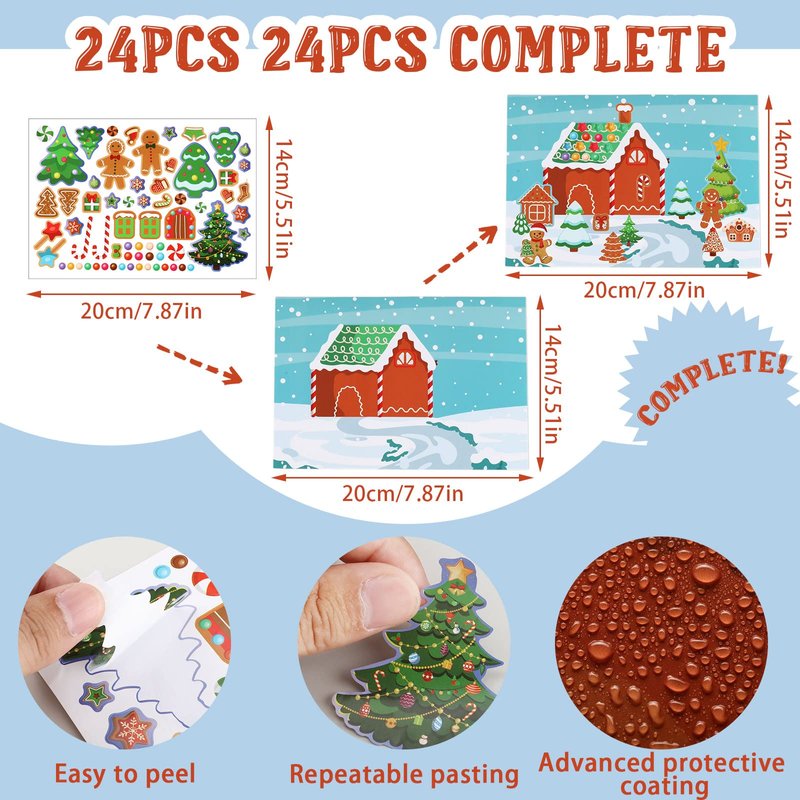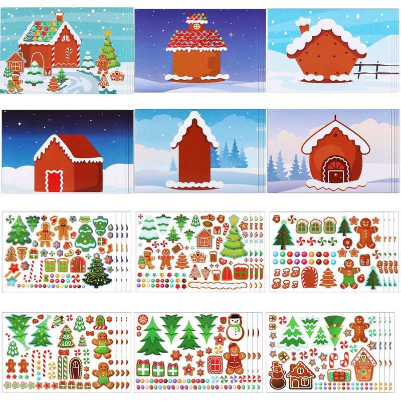 - Gingerbread House Kit Bulk: there are 48 sheets of gingerbread house stickers in the package, designed in element stickers and background stickers, the element stickers have 6 styles and the background stickers have 6 styles as well, 4 sheets for each style; Sufficient quantity and rich style can meet your DIY needs to make a gingerbread house