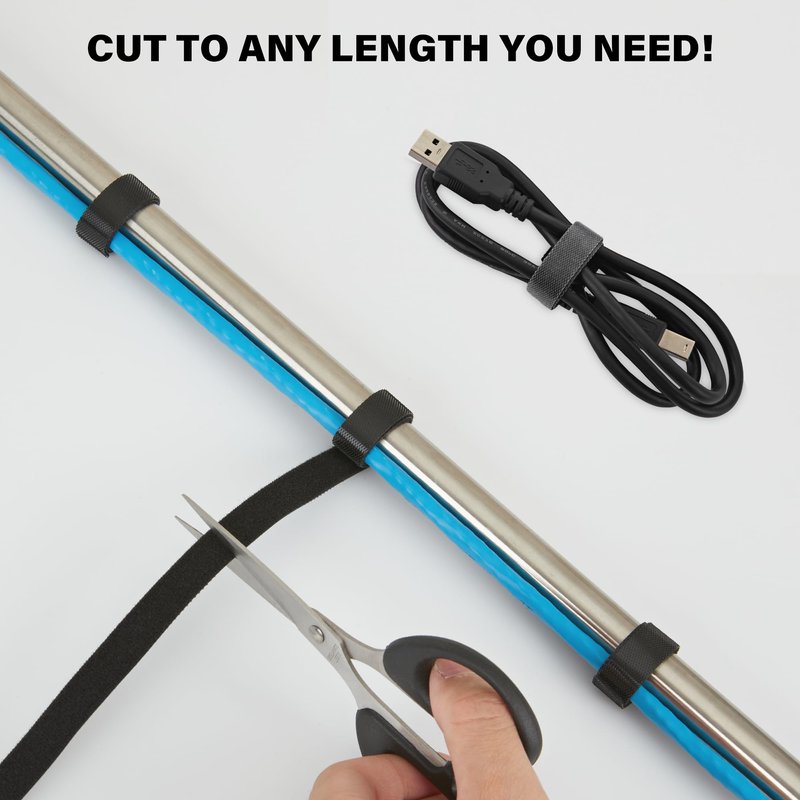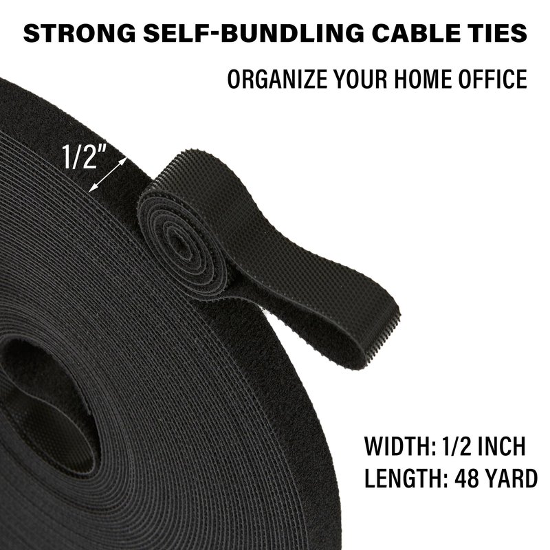 48 Yard x 1/2 Inch Adjustable Cable Straps Roll, Black Reusable Fastening Cable Ties, Free Cut Length Hook and Loop, Wire Management Securing Strap for Cable Tidy Cord Organizer