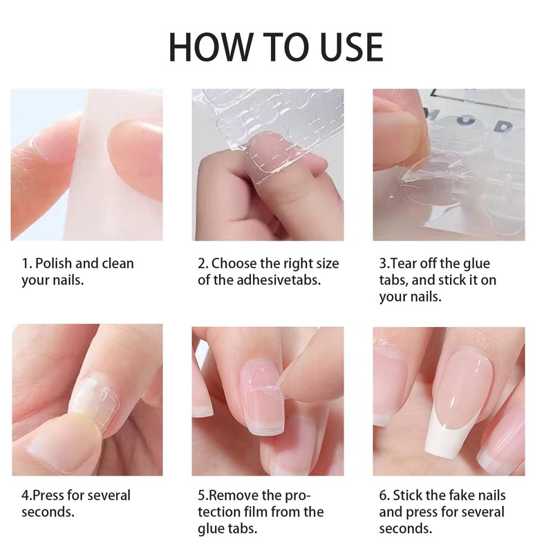 - Upgrade: Environmentally friendly fake nail glue stickers which, little yellowish, and thinner than normal tabs adhesive, and it is more viscous and firmer.