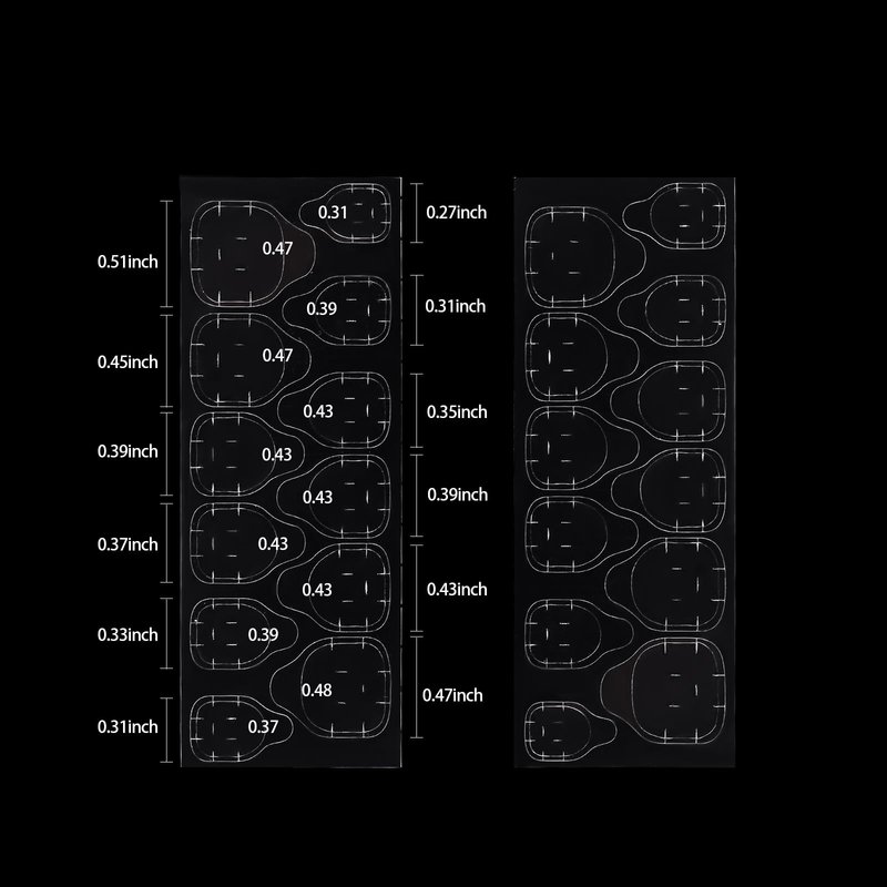 - Package Content: 20 Sheets of waterproof nail stickers(24 tabs per sheet), 12 different sizes tabs in each sheet to fit each nail.