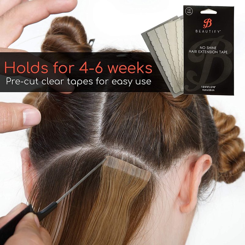 - ✔ EASY TO APPLY: Double sided tape for expansions tabs are pre-cut, so there’s no stress approximately having sticky scissors. The liner is white but the genuine extention tape is evident so you're beyond any doubt that the wrap up will be natural-looking! No Shine is known for its adaptability, and quality, making it simple to apply on hair wefts.