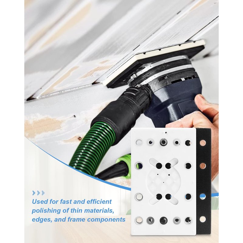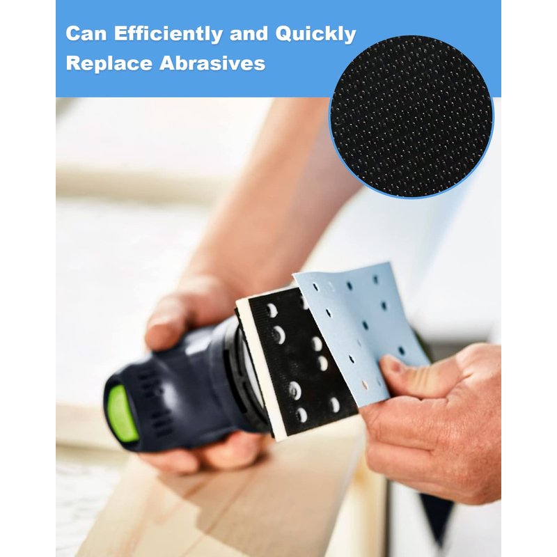 hook-and-loop design can replace abrasives efficiently and quickly, and even and high-density hooks provide strong stickiness and longevity. 12 hole design can effectively collect dust.