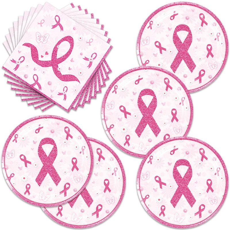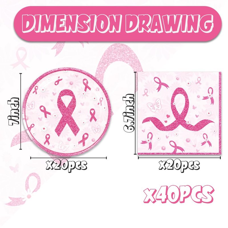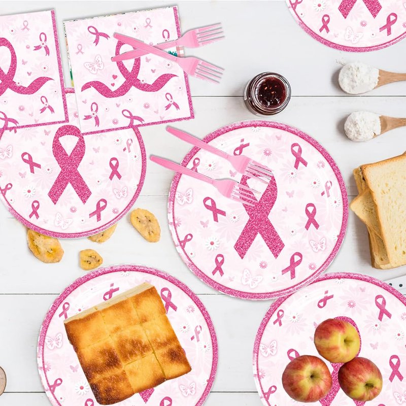 48Pcs Breast Cancer Party Supplies 24 Plates + 24 Napkin Breast Cancer Birthday Party Decorations (breast cancer)
