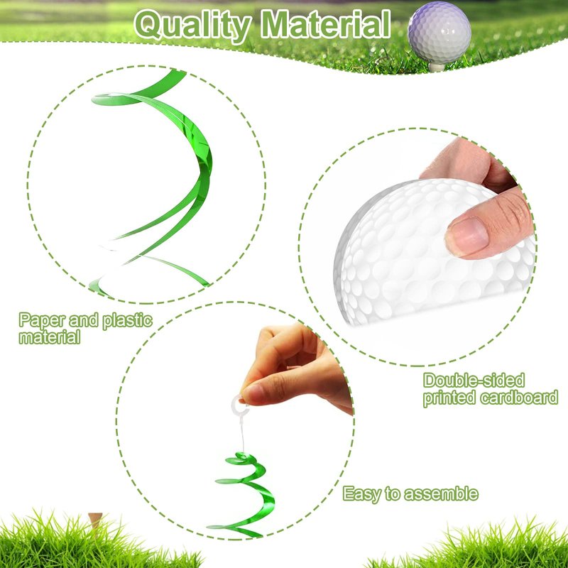 - 【Suitable Size for Hanging】The golf hanging swirls card measure about 11 - 17cm / 4.33 - 6.7 inch, and the length of each swirl is about 101.6cm/ 40 inch when stretched. It also comes with a string of appropriate length to string the ball together for decoration, the golf party swirls set will be more and lively.