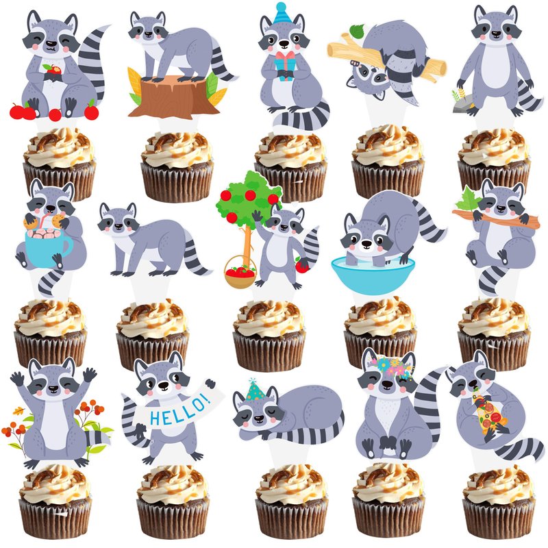 - 【Woodland theme baby shower supplies】The woodland theme baby shower cupcake toppers contain raccoons in various poses. Perfect for raccoon theme birthday party, raccoon theme party, woodland birthday, baby shower, forest animal party, etc.