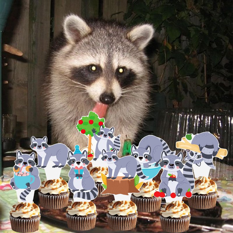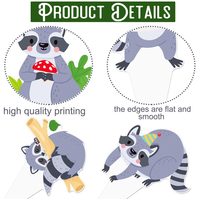 - 【Woodland animal birthday party decorations】All the raccoons birthday party decorations are made of heavy cardboard, sturdy enough to be able to steadily decorate your cupcakes as well as cakes. Maintains its glossy finish over long periods of time.