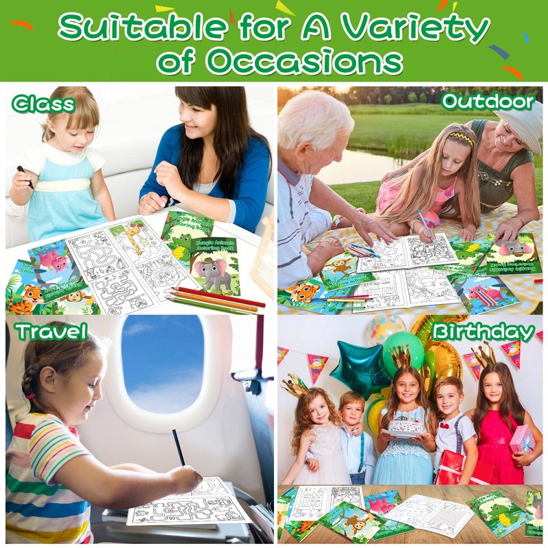 - Super Value Bulk Coloring Books: You will get 48 pieces of safari animals coloring books in 8 styles, 8 pieces for each kind. Each coloring book is printed with 12 varying pictures. Double-sided printed. The kids coloring books have a total of 96 jungle animal patterns, the quantity is enough to meet your DIY needs and let your kids play all day long