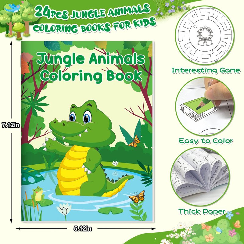 - Rich in Content Patterns Design: Mini coloring books for kids have various animals patterns in these books, such as Lion, tiger, elephant, monkey, crocodile, hippopotamus, zebra, giraffe etc. Not only do these coloring activity books spark children's imagination, but also they're also good for helping little ones express themselves. The Jungle Safari Animals activity book includes maze fun games that are good for developing your child's brain power and intelligence