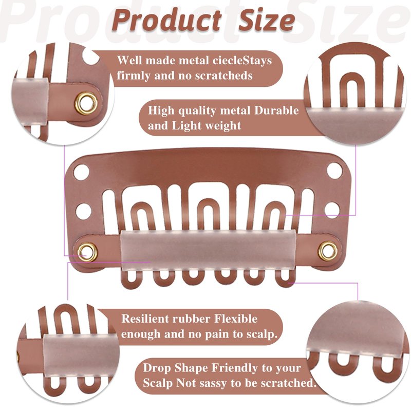 - Practical design: Wig clips for hair extensions with rubber features 6-tooth U-shaped design, 6 holes allow you to more easily attach or sew wigs or hair pieces with this snap clip, hair extension clips with strong and gripping silicone rod , good grip, specially designed for hair extensions and wigs, and the overall effect is more natural.