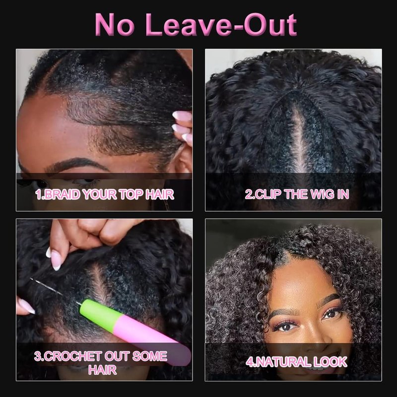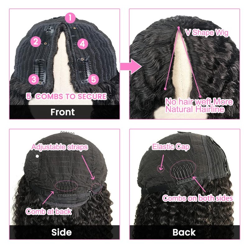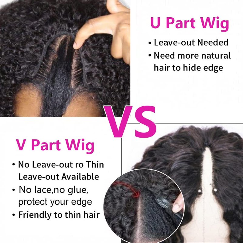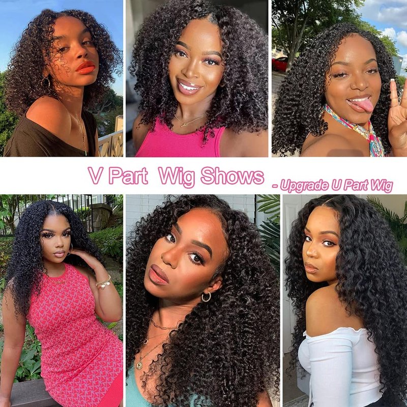 1.Curly V Part Human Hair Wig,Upgrade From U Part Wigs,No Glue,No Lace and No Sew-in.Two Ways to Wear- No Leave Out or Minimum Leave Out, Blend Well